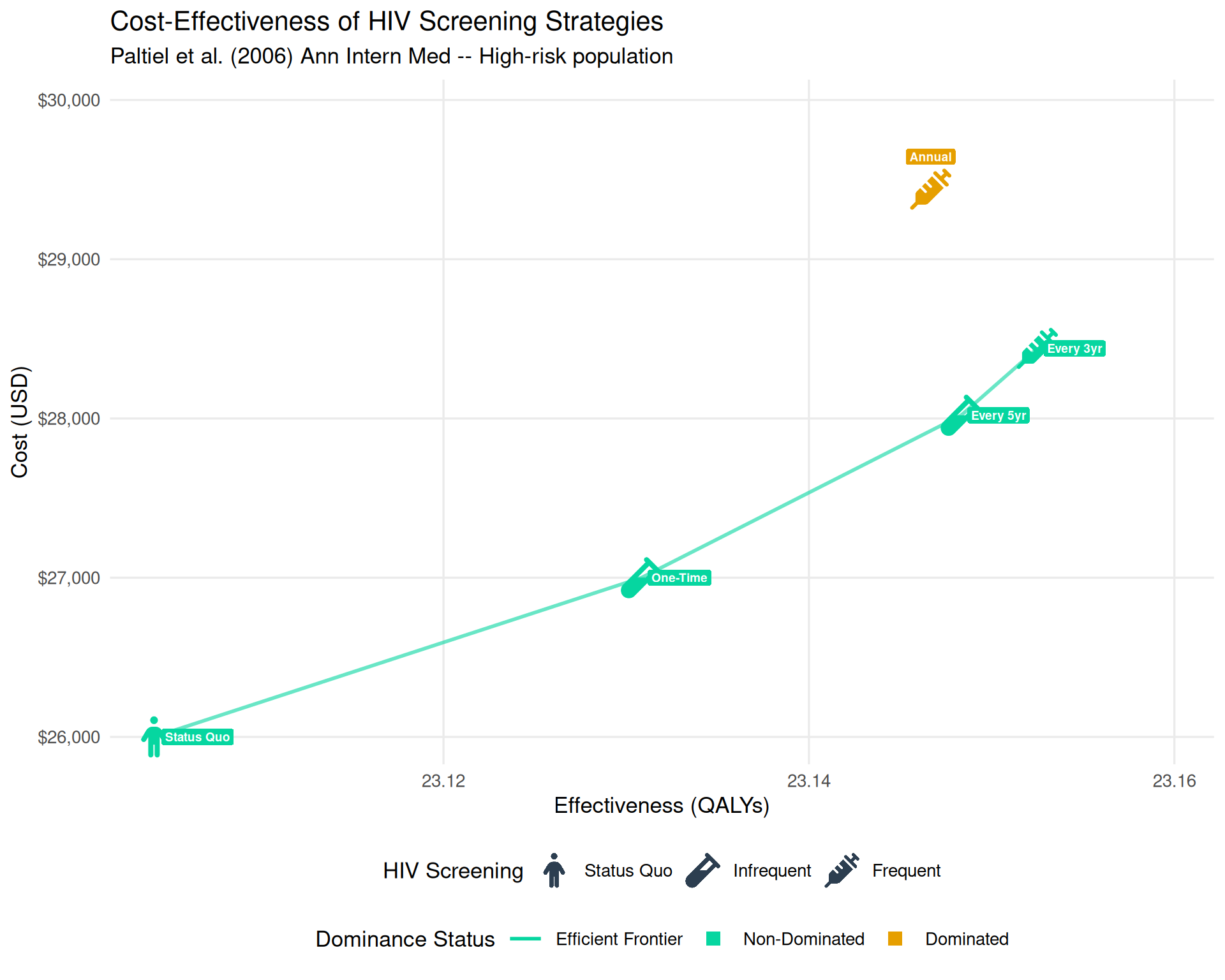 labs(title = "Cost-Effectiveness of HIV Screening Strategies",